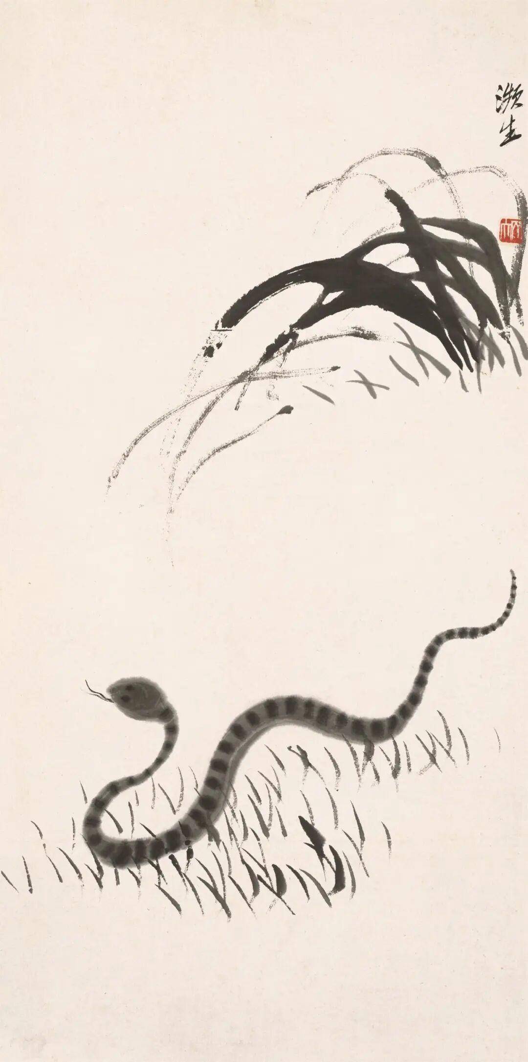 这幅《如此千里》(69×34cm,纸本水墨,1940年)属于齐白石笔下罕见的《十二属图》系列,该系列为北京画院的镇院之宝。此次全套作品首次在山东完整集结展出,为观众呈现了一场难得的艺术盛宴。值得一提的是,这套作品是齐白石应好友关蔚山之邀历时四年完成——最初因“未曾见过龙”而不愿违背“不画未见之物”原则的齐白石屡次婉拒,但关蔚山每年通过画店订画,最终集齐十二幅,成就一段艺坛佳话。